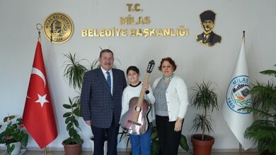 Milas Belediye Başkanı Fevzi Topuz, kendisinden gitar talebinde bulunan öğrenci Baha Doruk Serin’in isteğini yerine getirerek hediyesini takdim etti.